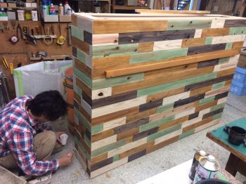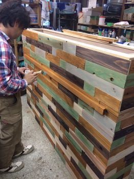 折角なので、観葉植物も飾れるように棚の上部を箱にして・・・