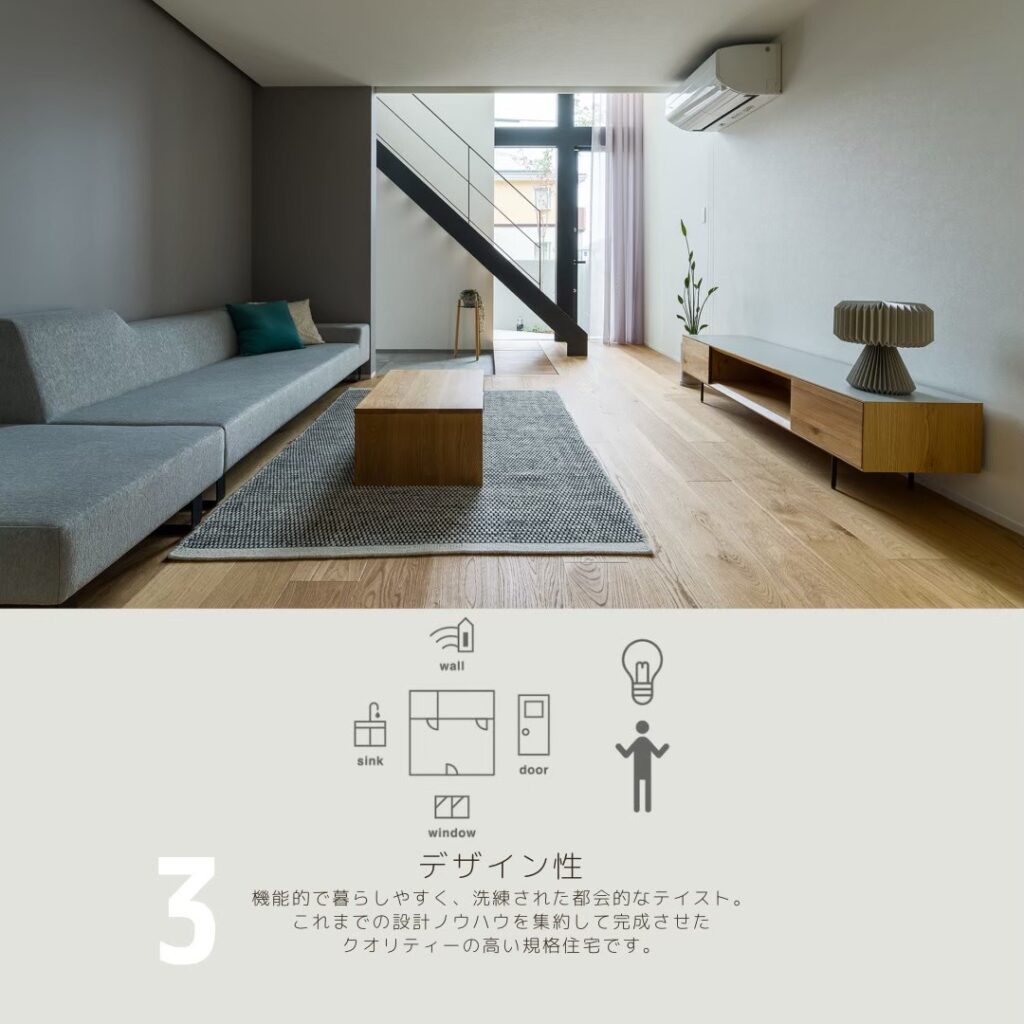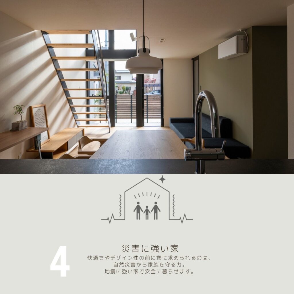 機能的で暮らしやすく洗練されたデザインの中で耐震性の優れた、家族が安全に安心して住み続けてもらえます。