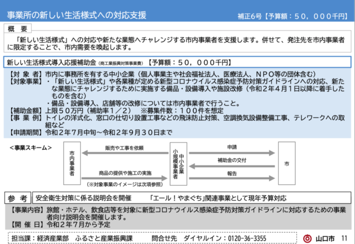これを受けて山口市では、「新しい生活様式導入補助金」(山口市ふるさと産業振興課)が始まりました。