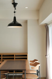 レトロなペンダントライトがLDKの空間に溶け込みます。