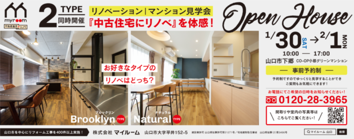 新山口駅近くのマンションで『リノベーションマンション』の見学会を開催します。