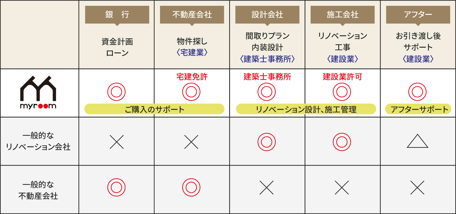 物件探しから工事・アフターメンテナンスまで、すべてマイルームにお任せください!