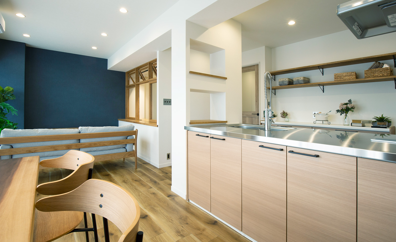 新築住宅を購⼊する場合に比べ、中古住宅をリノベーションする場合、⼟地・建物の購入費⽤が安くなるだけでなく「カウンターキッチンが良い」「部屋の区切りがない開放的なお部屋にしたい」「家事の動線が分かりやすい部屋にしたい」など間取りのこだわりや、「二世帯」「夫婦と⼦供の3⼈暮らし」「ペットと住む家」など家族構成に合わせて設計を⾃由にカスタマイズできます。