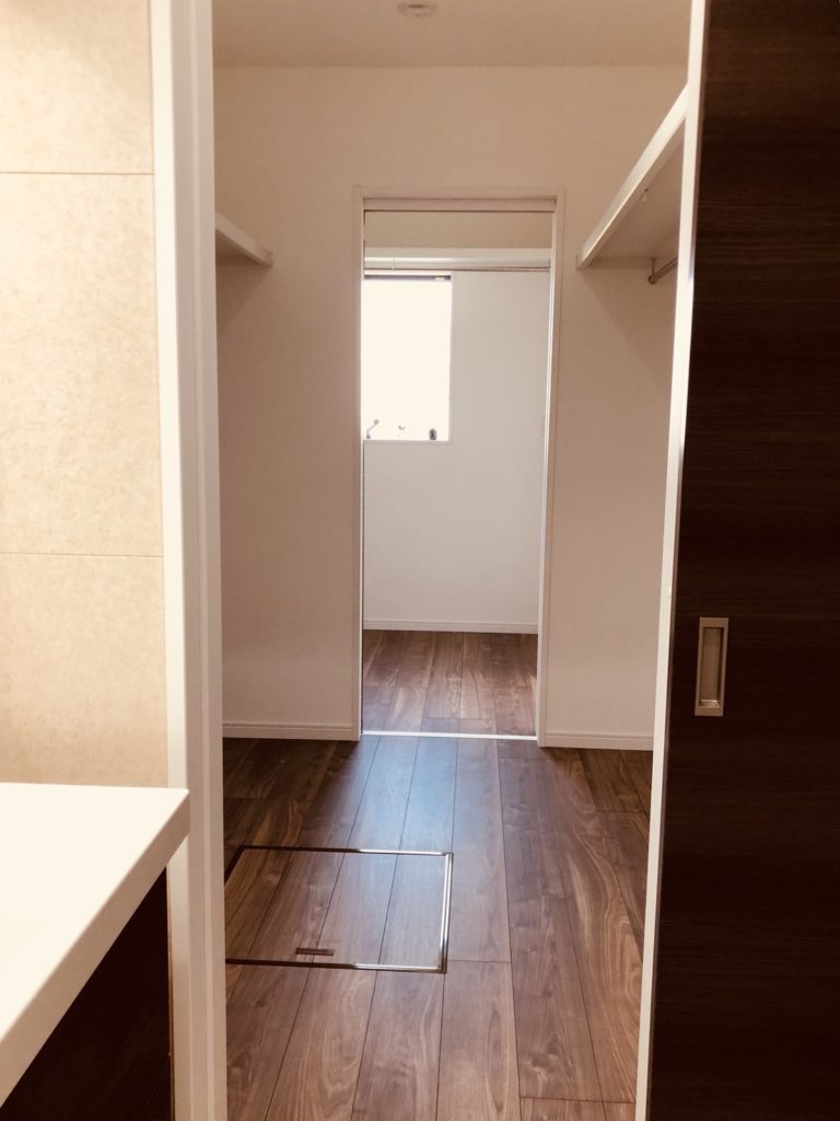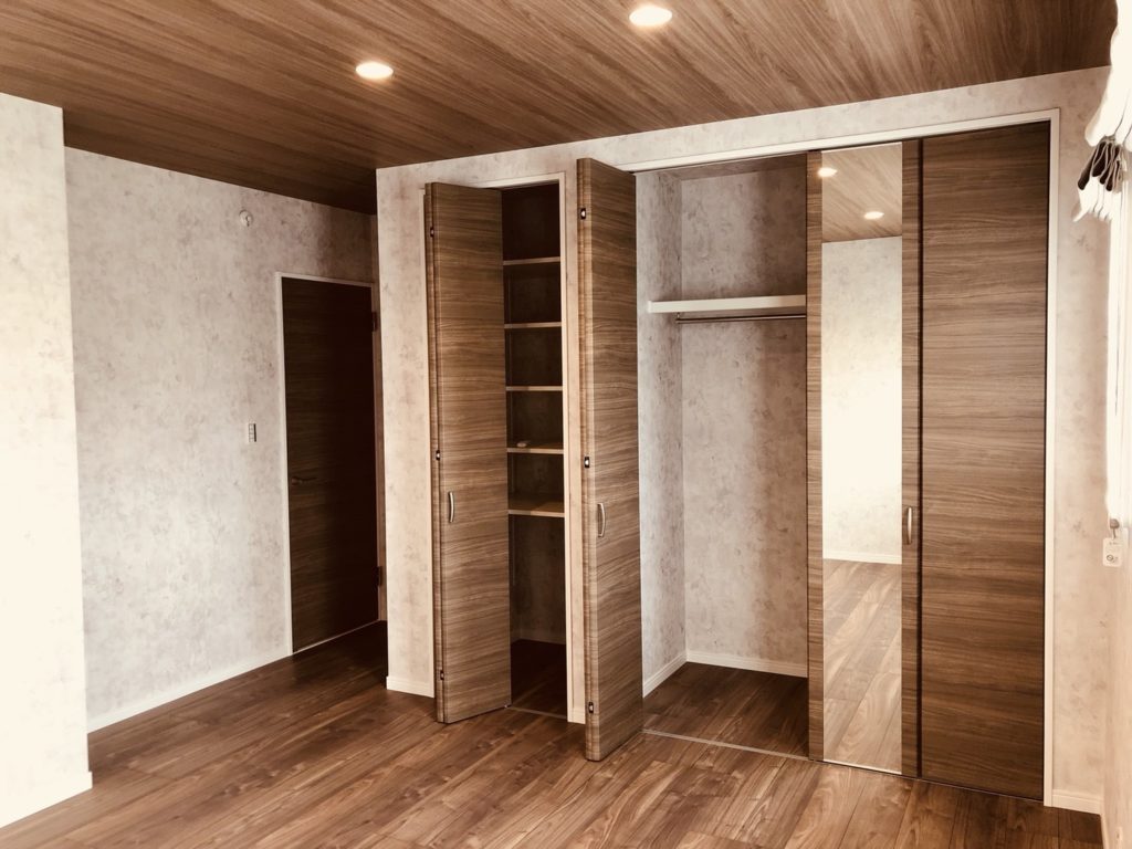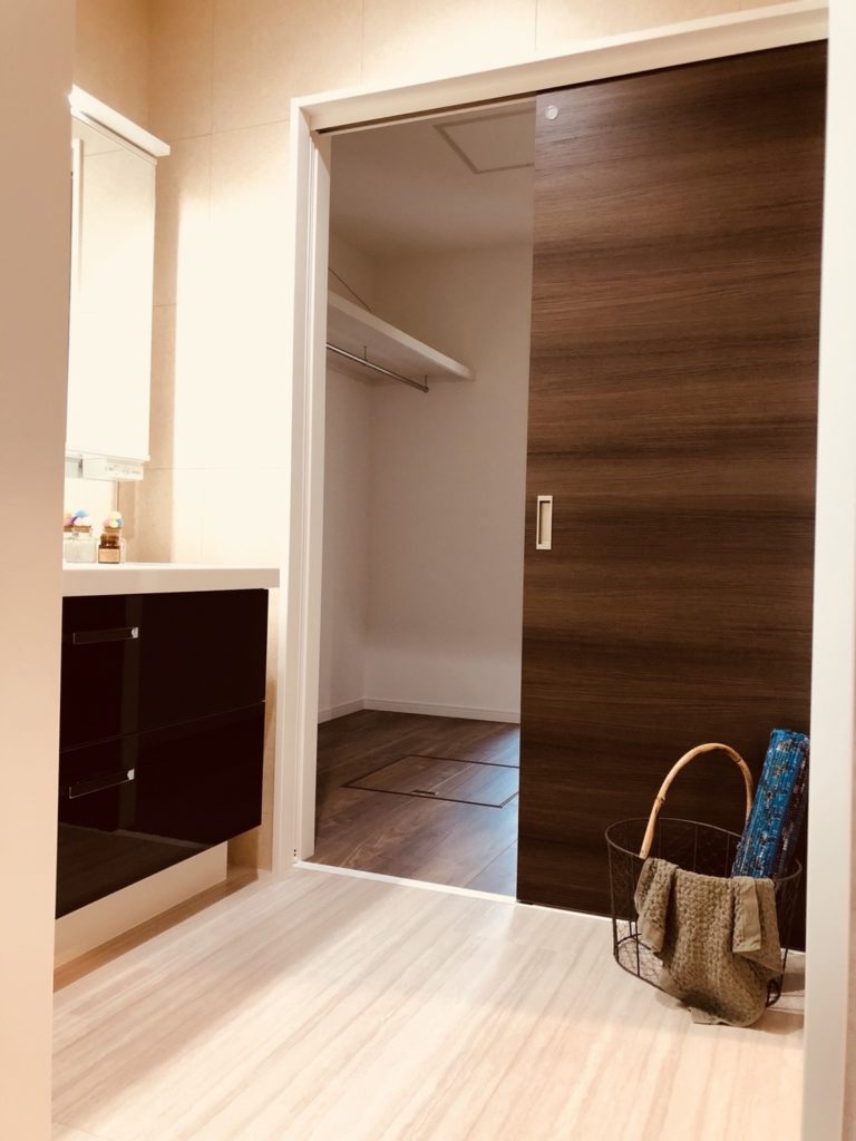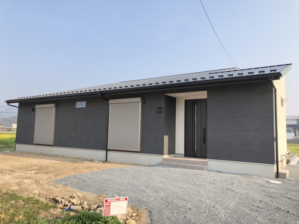 施工概要:子育て世代の少しだけ遠い未来を想定して、平屋建ての家を設計しました。 狭さを感じさせない空間づくりと、最近注目されているウォークスルークローゼットを設置しました。 廊下を無くして収納に・・・、日常動線のなかで収納を終わらせる新しい形です。