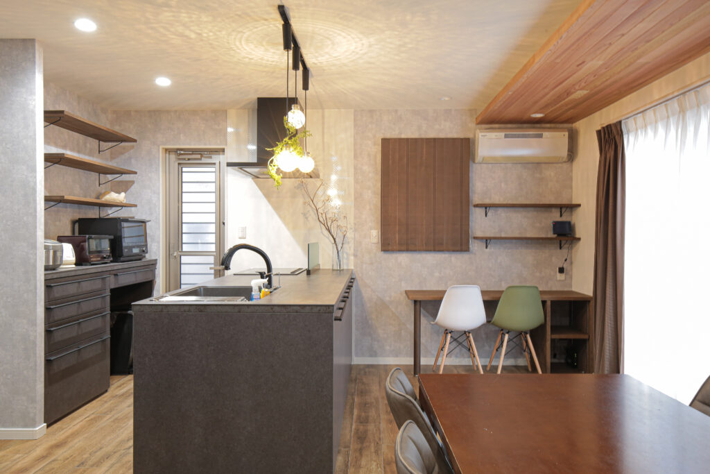 施工概要:キッチン・トイレ・LDK間取り変更・内装工事(建具/LED照明交換/収納棚設置等)・外壁塗装