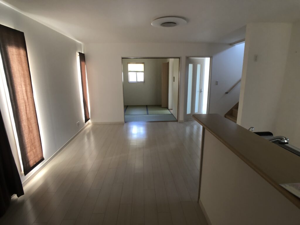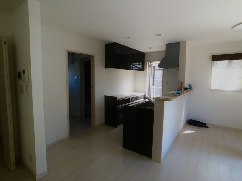 LDKをより広く使いたいということで、LDKの隣室になる和室を一体化し、キッチンの交換や一部目線隠し壁の設置、リビング周りに余裕を持たせました。
