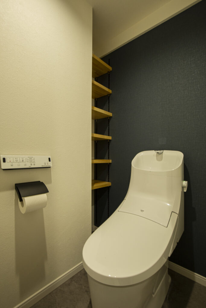 小物で散らかりがちな洗面周り、可動式の小さな棚や、隠せる開きドア。ほんの僅かな奥行きでもあると重宝しますよね。洗面台3面鏡の裏も収納になっています。